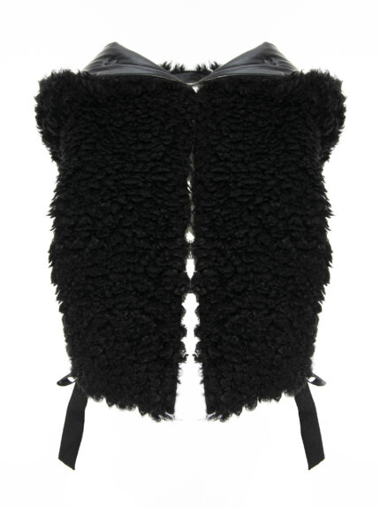 Vesta multifunctionala cu fermoar in talie este realizata din stofa cu amestec de lana. Combinata din doua tesaturi diferite, insa compatibile din punct de verede stilistic. Cele doua parti sunt detasabile si se pot combina cu alte piese compatibile, construind o piesa noua.