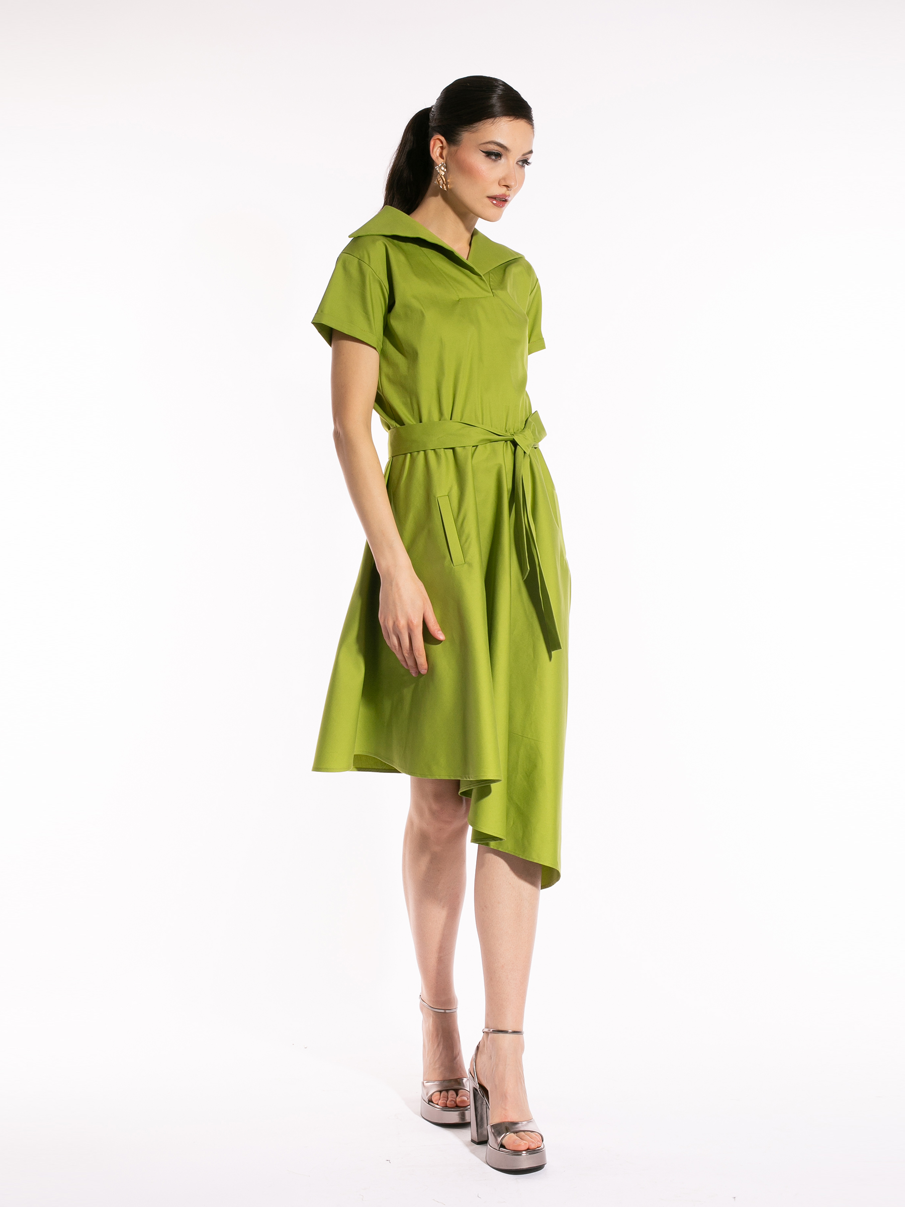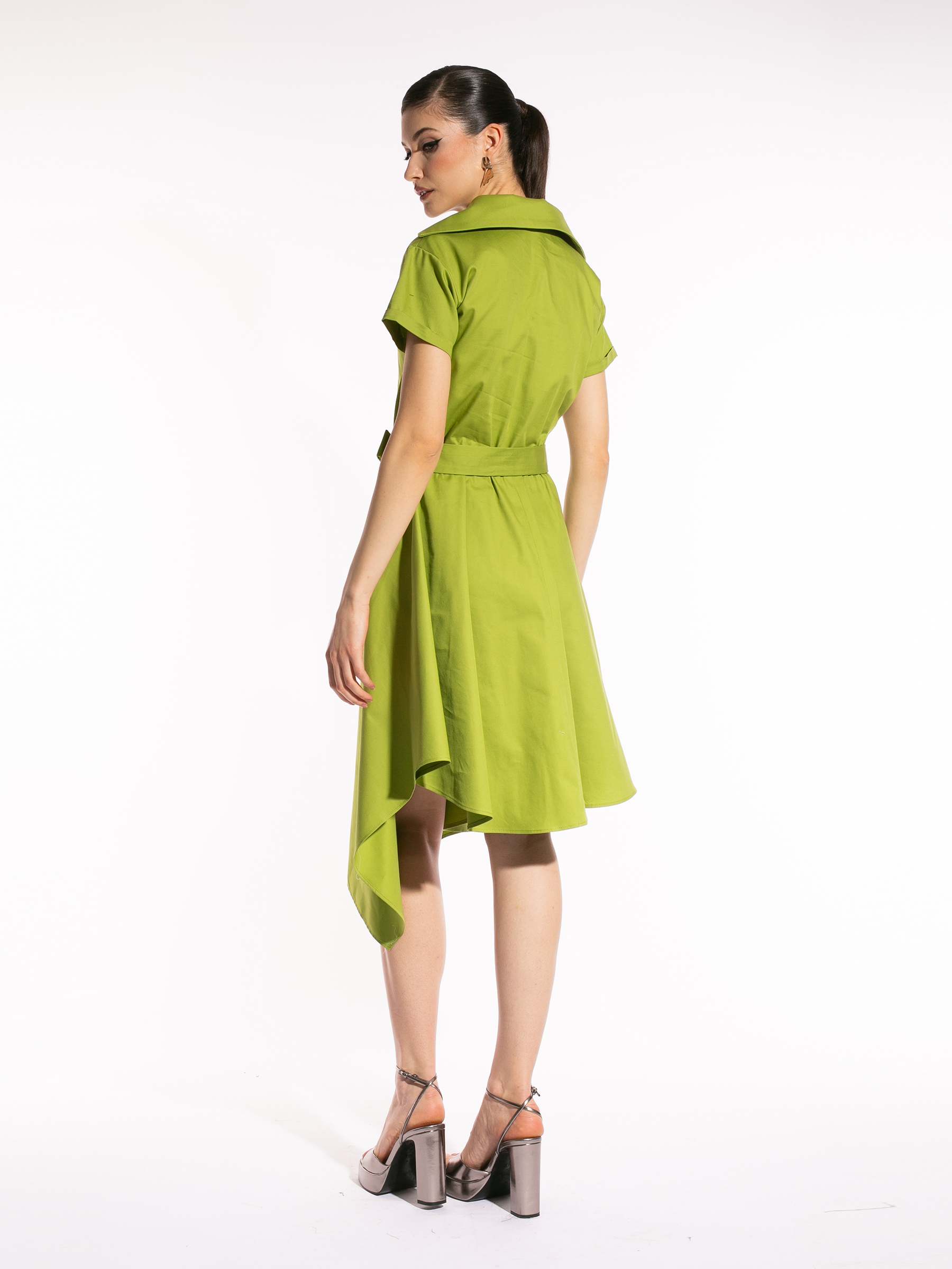 Etichete: rochie dama, rochie designer roman, rochie made in Romania, Rochie verde din bumbac cu guler patrat
