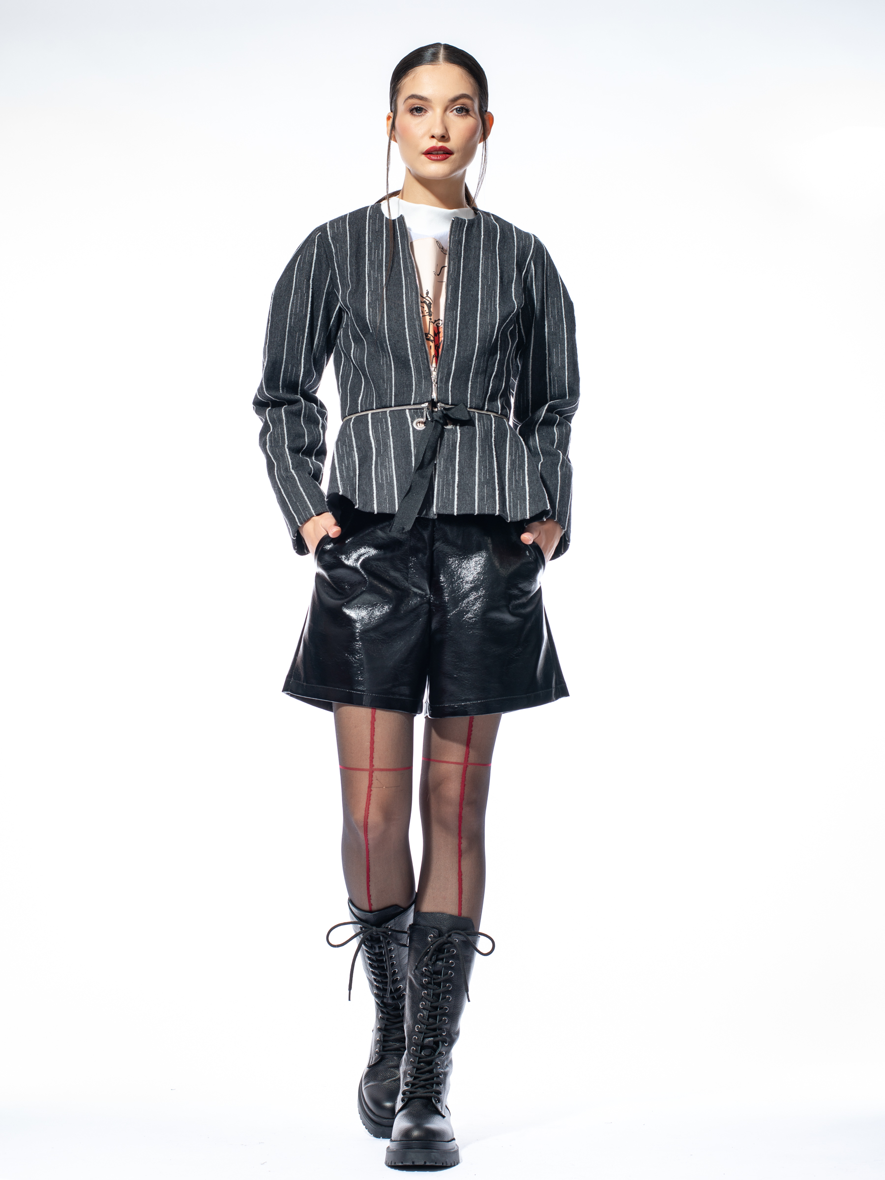 Jacheta din denim cu fermoar în talie Alice face parte din seria produselor compatibile, concepute pentru a-ți transforma garderoba în doar câteva minute cu ajutorul fermoarelor amplasate în talie. Fermoarul poziționat strategic îți permite să porți jacheta ca două piese separate sau să o combini cu produsele din colecțiile anterioare și viitoare, atât timp cât alegi aceeași măsură.