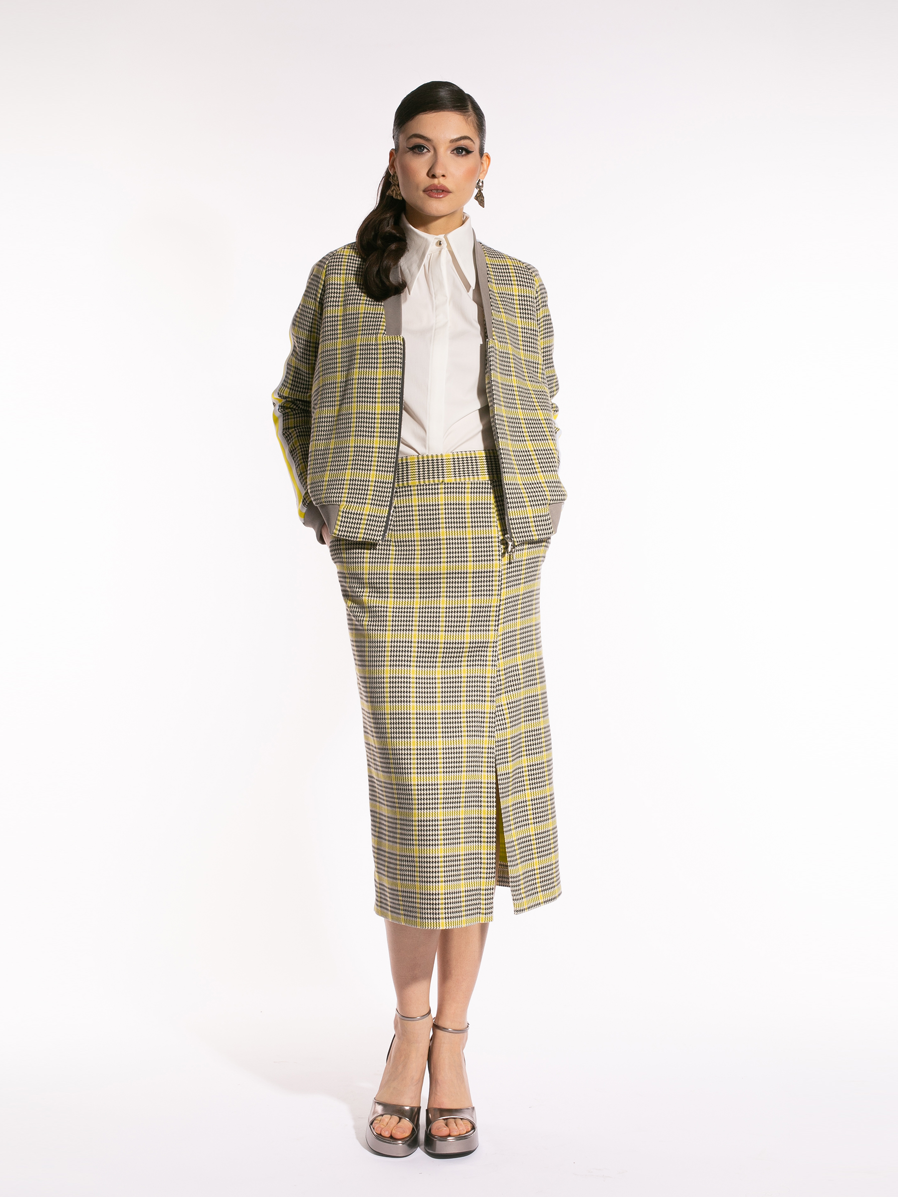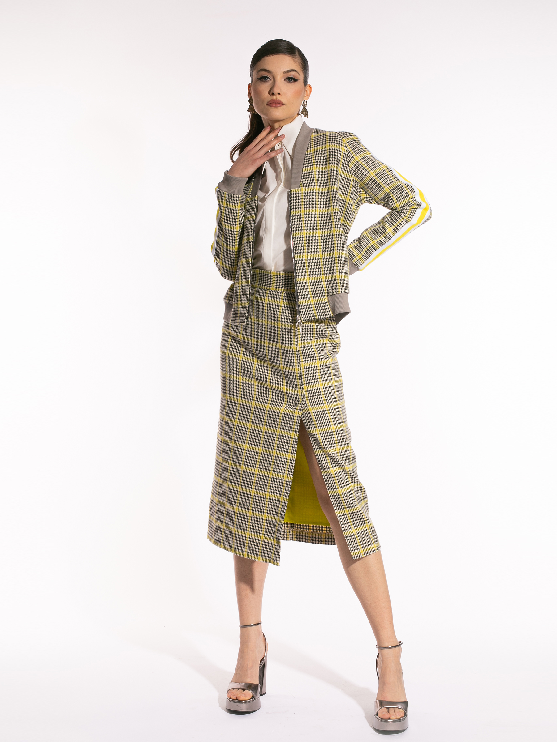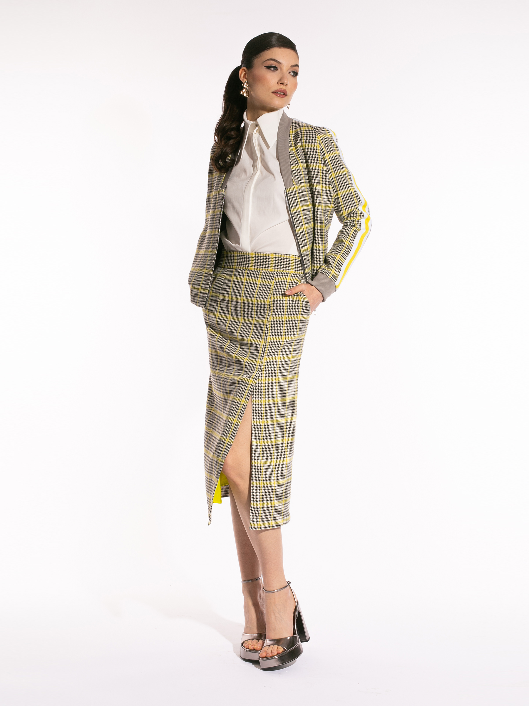 Fustă din tartan cu șliț pe picior