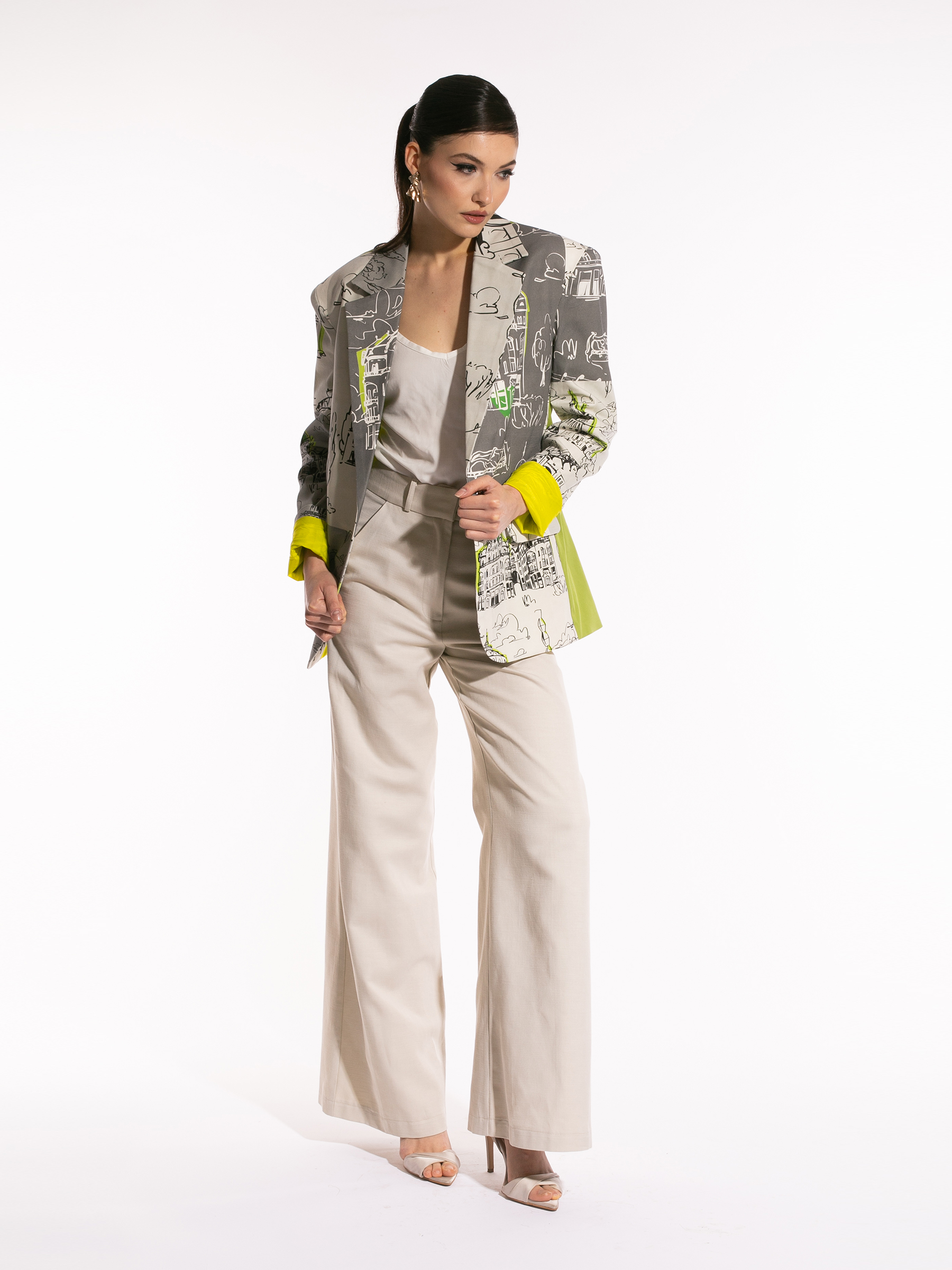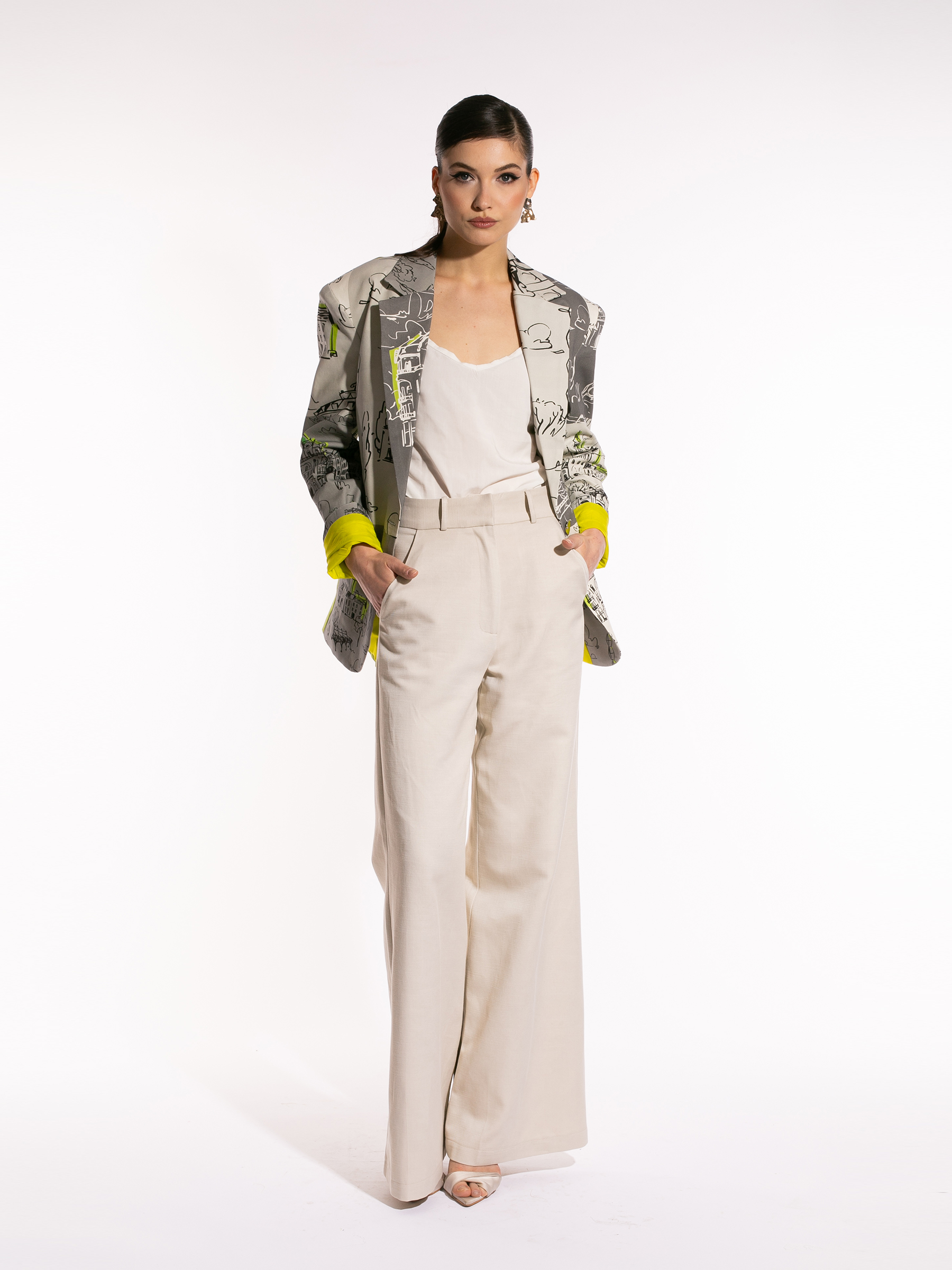 Sacoul Oversized Elysé reinventează eleganța relaxată cu un twist modern: croiala lejeră și confortabilă se întâlnește cu printul specific brandului, reinterpretat într-o formă nouă și fresh.
